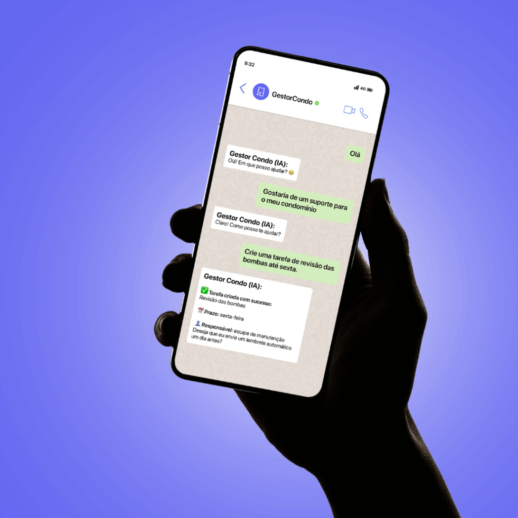 Conecte, digitalize e automatize a gestão interna do seu condomínio de tarefas a finanças com inteligência artificial integrada ao WhatsApp.